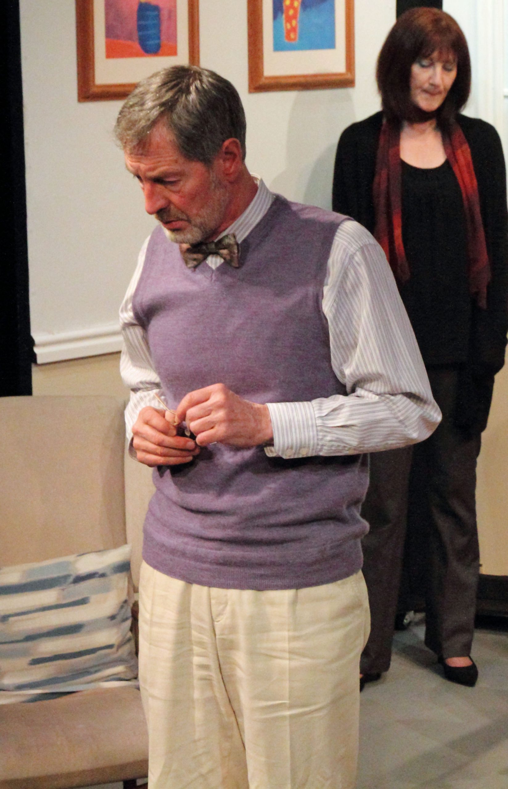 His anxious husband, Larry, was portrayed brilliantly by Michael Thorne who delivered a ‘worm that turned’ finale of memorable quality and clever off-line reactions throughout the play that reinforced his nervous, tilting towards obsessive, behaviour.