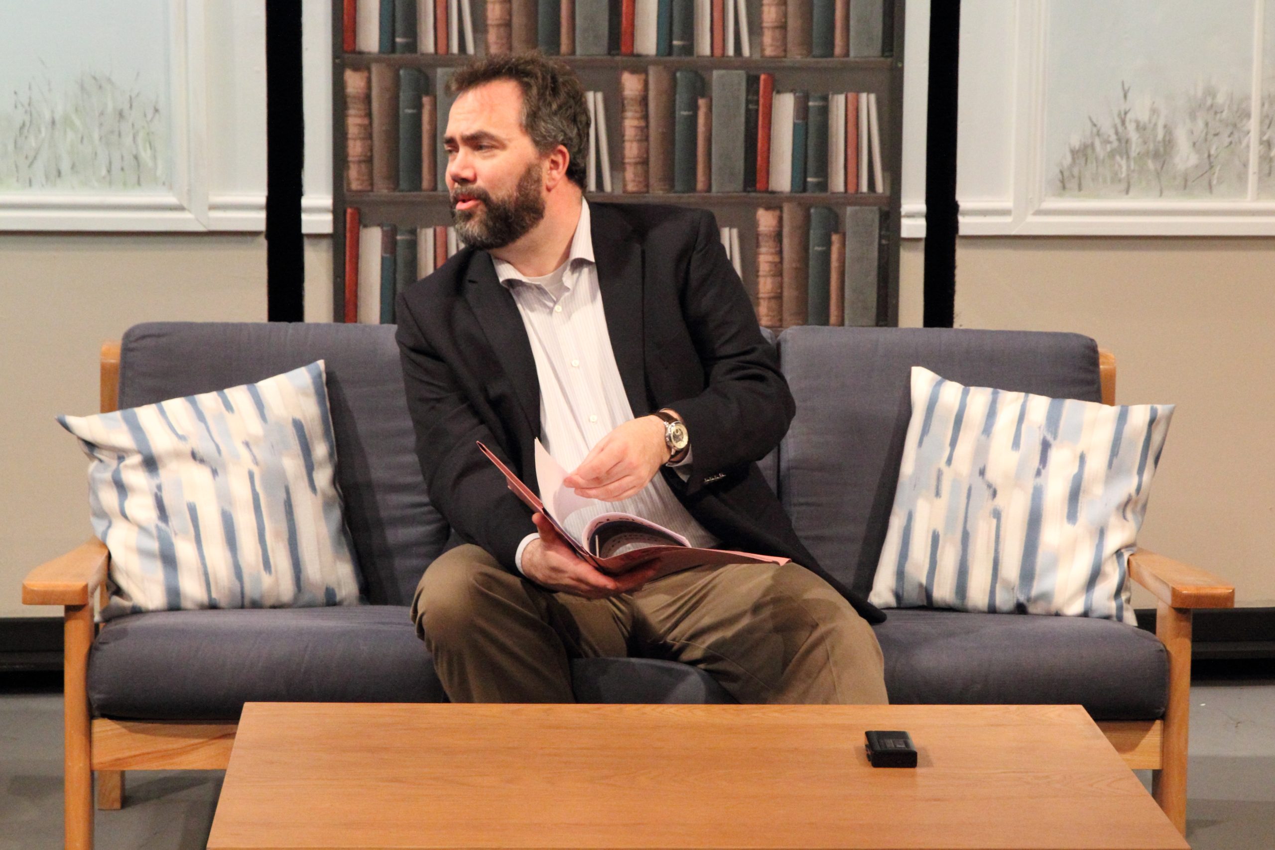 Brad Pollard domineered the stage when his brash American journalist, Nick Towneley, barged into Freddie and Larry’s domestic tranquillity to pursue his interest in the girls Freddie (in a mission to prove the worth of locally administered comprehensive education) had managed to get into Oxford while teaching in a Council estate secondary school twenty five years earlier. Brad has comic prowess of the highest order and effortlessly delivered the lighter shades of this cleverly layered plot which would finally turn very dark.