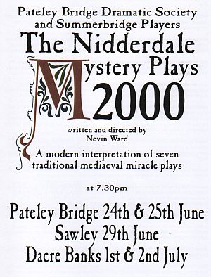 Specially written for the Millenium, this joint collaboration between Pateley Bridge Dramatic Society and Summerbridge Players was presented from the back of a 40ft trailer in outdoor locations at Pateley Bridge, Dacre Banks, and Sawley.
