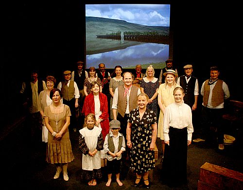 When the Committee of Pateley Bridge Dramatic Society asked Nevin Ward to write a play for their 70th anniversary, they knew they were in safe hands. Do you remember the wonderful Mystery Plays he did for the Millennium? The Society was actually thinking about a particular story featuring Gouthwaite Hall in the 17th century but Nevin, not realising this, began researching about the building of the reservoirs, Gouthwaite, Angram and Scar. It was a happy misunderstanding, which resulted in a monumental play about a monumental undertaking. “The Dam Play”, sub-titled “The story of Nidderdale’s Reservoirs and the People Who built them” was directed by Christine and Nevin Ward. We learned about the building of the three reservoirs, from the early deliberations of Bradford Corporation in 1889, to the stories of the people who lived in Scar village in the early 20th century. Three hours sped by in which we were entertained, educated and, at one point, moved to tears. An excellent souvenir programme helped to set the scene.