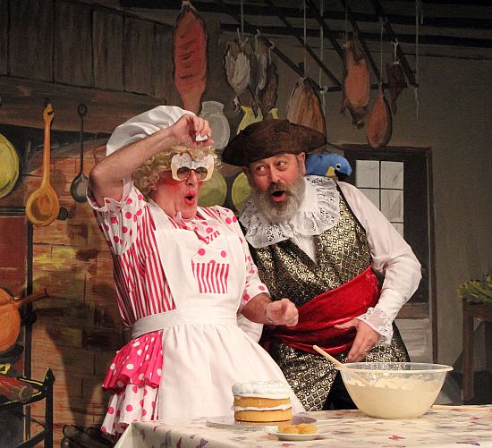 The part of Cupcake Cook gave Nevin Ward the chance to wear an excess of pink as the Dame – the lipstick was particularly fetching. Steve Hunt as Jeers, the Butler, was the embodiment of gloom, a great comic turn. Jerry Harvey as Captain Upspoke used his beard to great effect but was upstaged by his Stuffed Parrot: that’s pantomime for you!