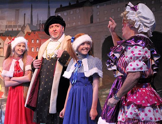 Boy, held the stage well and sang sweetly. Vicky Burton as Alice Fitzwarren played her part with simple sincerity and her singing was lovely too. A number of youngsters took singing and dancing parts and did so with energy and enthusiasm. Mia Hirst and Brenna Smith stood out as Mitzi and Fritzy, Alderman Fitzwarren’s cheeky daughters.