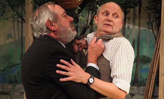 Cue misunderstandings galore, ribald slapstick and merry couple of hours spent hooting with laughter. Liggins does a fine line in arch disdain, set against Harvey’s blustering and increasing rage; Buller and Dodsworth meanwhile are the perfect foils, displaying wonderful exasperation and growing ever-more baffled as the plot twists and turns. Barber and MacNair bring nicely judged cynicism and naivety to their respective roles and have a memorable moonlit marrow scene (yes, really); and Thorne’s breathless clowning as the foppish Poke injects tremendous energy to proceedings, plus the occasional wince as he collides with the scenery