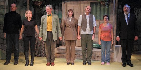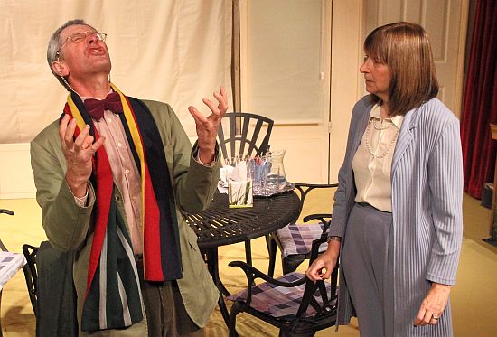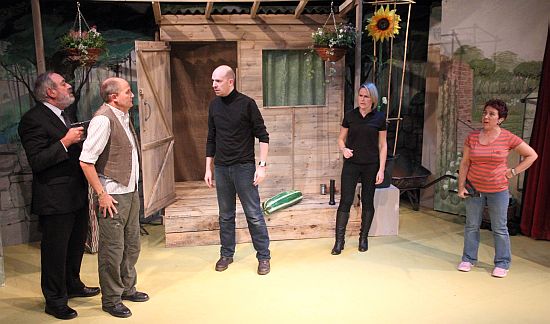 It’s all classic English farce material played out, appropriately, in an English country garden (well, allotment) by a well-drilled cast who have a ball with Burton’s cleverly-constructed script. Joyce Liggins and Jerry Harvey play the straight-laced Guardianistas lording it over the Parish Council while merrily sniping at one another (and anyone else in sight); against them, Peter Buller and Ruth Dodsworth are their gardeners, bemused by their employers’ devotion to lawns and orangeries and fretting at their underhand dealings in the produce show.