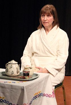 From the dark side, we were then transported to the gentler, whimsical world of Strawberry Yoghurt thanks to an endearing portrayal by Joyce Liggins as an abandoned wife. Of all the first half pieces, this was archetypal Bennett and Joyce showed complete mastery of the genre – wistful, quirky and funny but sad to the bone.