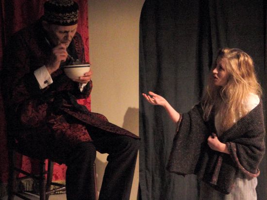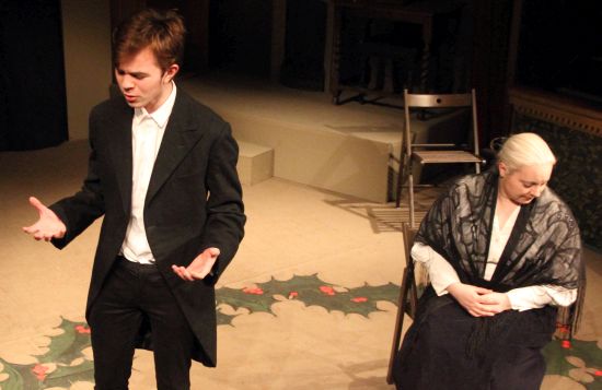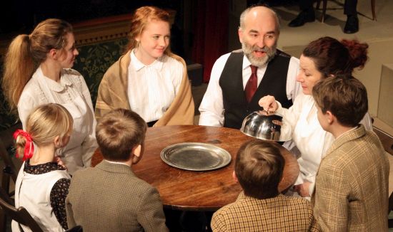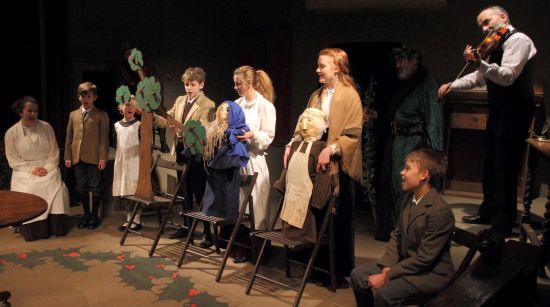 The Christmas scene at the Cratchits is full of good cheer, an affectionate family atmosphere created as much by the singing of the ancient “Cherry Tree Carol” as by the warm performances of Steve Rouse and Rachel Smith as Bob and Mrs Cratchit.