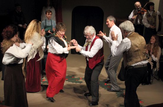 Nevin Ward and Linda Harvey as Mr and Mrs Fezziwig are infinitely hospitable, with the carol “The Season of Holly and Ivy” and the lively dance that follows emphasising the merriment of their Christmas Ball.