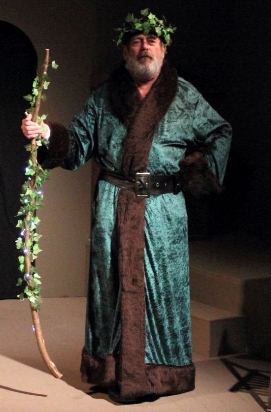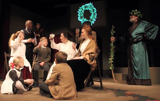 There are wonderful costumes for over a hundred characters, skilfully designed and made by Christine Ward – including a stunning outfit for the Ghost of Christmas Present, carrying a holly berry crown and glowing staff.