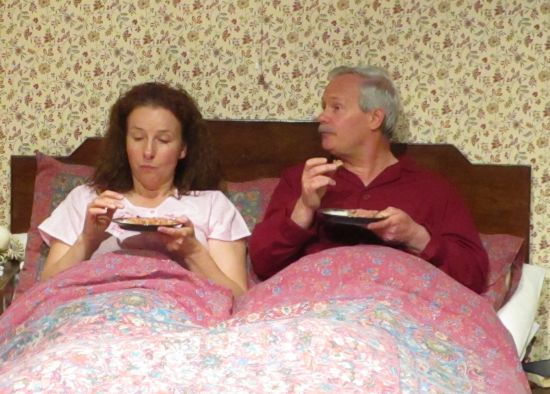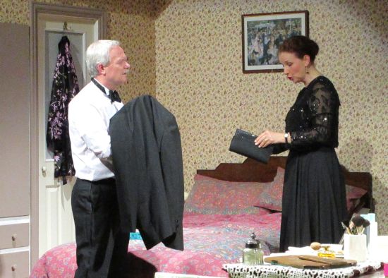 The play began in the bedroom of Ernest and Delia who were preparing to go out for their anniversary. Keith Burton and Debbie Forsyth played a typical middle class, very English couple, giving us glimpses of their safe and somewhat unexciting marriage. Keith and Debbie gave beautifully poised performances: Ernest a mixture of anxiety and conservatism and Delia, outwardly self-assured yet strangely unconfident when dealing with her daughter in law, Susannah.