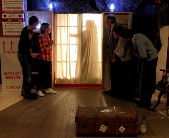 The play opened with the neurotic Evie, played by Jenny McNair, alone on stage packing, her shredded nerves plagued by seemingly paranormal activity around her, the effects ingeniously managed by the backstage crew.