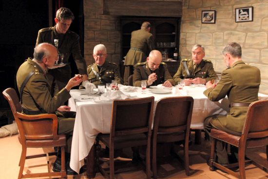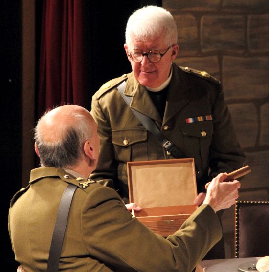 Post- interval, the play changes tone and we are introduced to the aristocratic Brigadier General Chisholm, a towering, glowering performance by Jerry Harvey in cracking form. He is splendidly bombastic – but again has the skill to turn this characterisation on its head as the surprise voice of decency, common sense and brave good judgement.