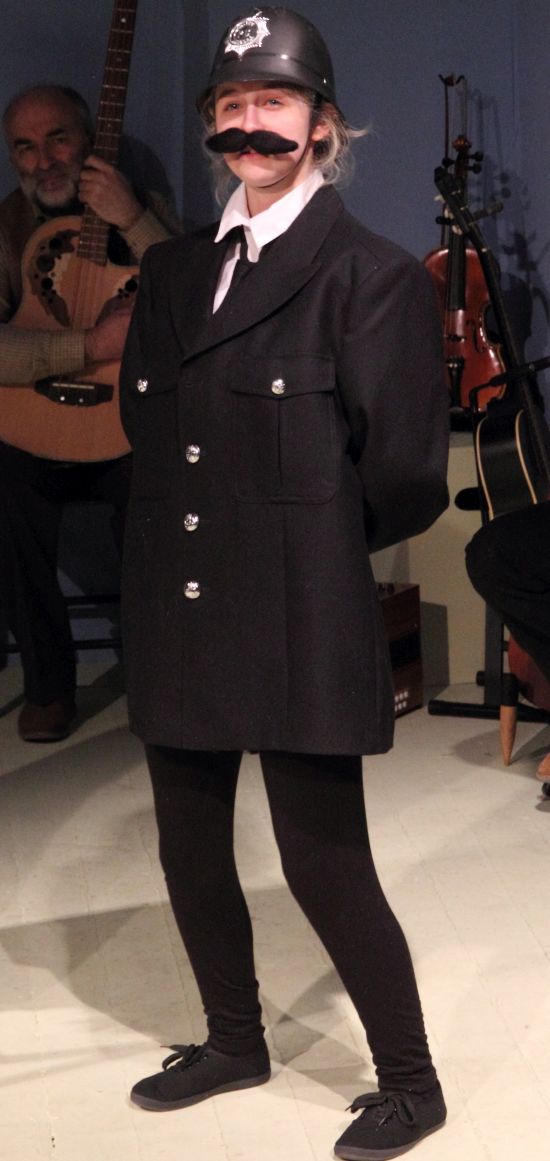 Brenna Smith gave an amusing caricature of the policemen, PC Felicity (!) Plod, with suitably dropped aspirants and a false moustache. They were obviously having fun.