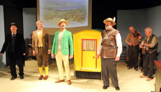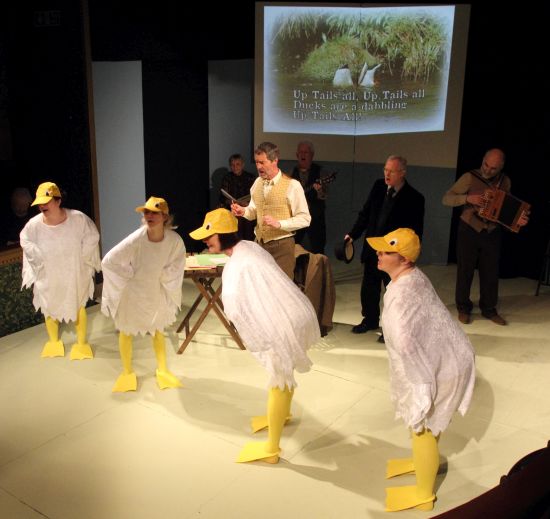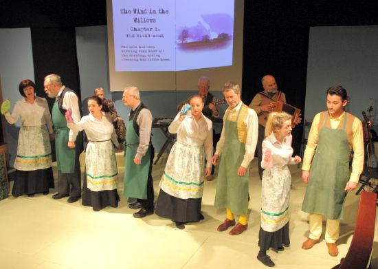 There were only 10 actors who between them played 50 parts. The four members of the chorus, with their speedy costume and character changes, delighted us with their versatility, changing from housewives to ducks, to field mice and swallows, weasels & stoats, sailors and then taking on their own multi-accented individual characters.