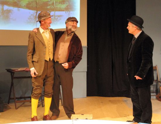 Michael Thorne, in tweed plus-fours, played the friendly Water Rat (actually a Water Vole, as he explained to us) who introduced Mole to the river and its delights. We saw his delightful smile and heard his poetry, then felt for him when his trust in everyone inevitably led him into trouble. Michael convincingly portrayed an outgoing, trusting and generous animal.