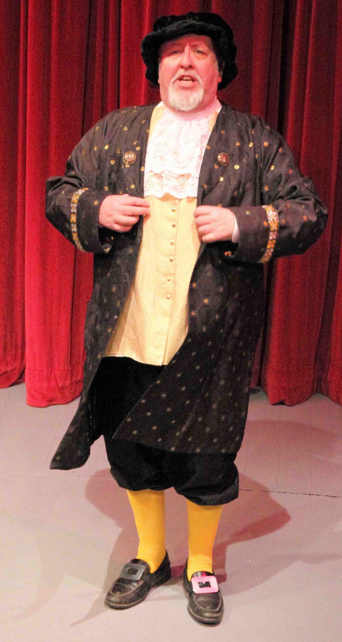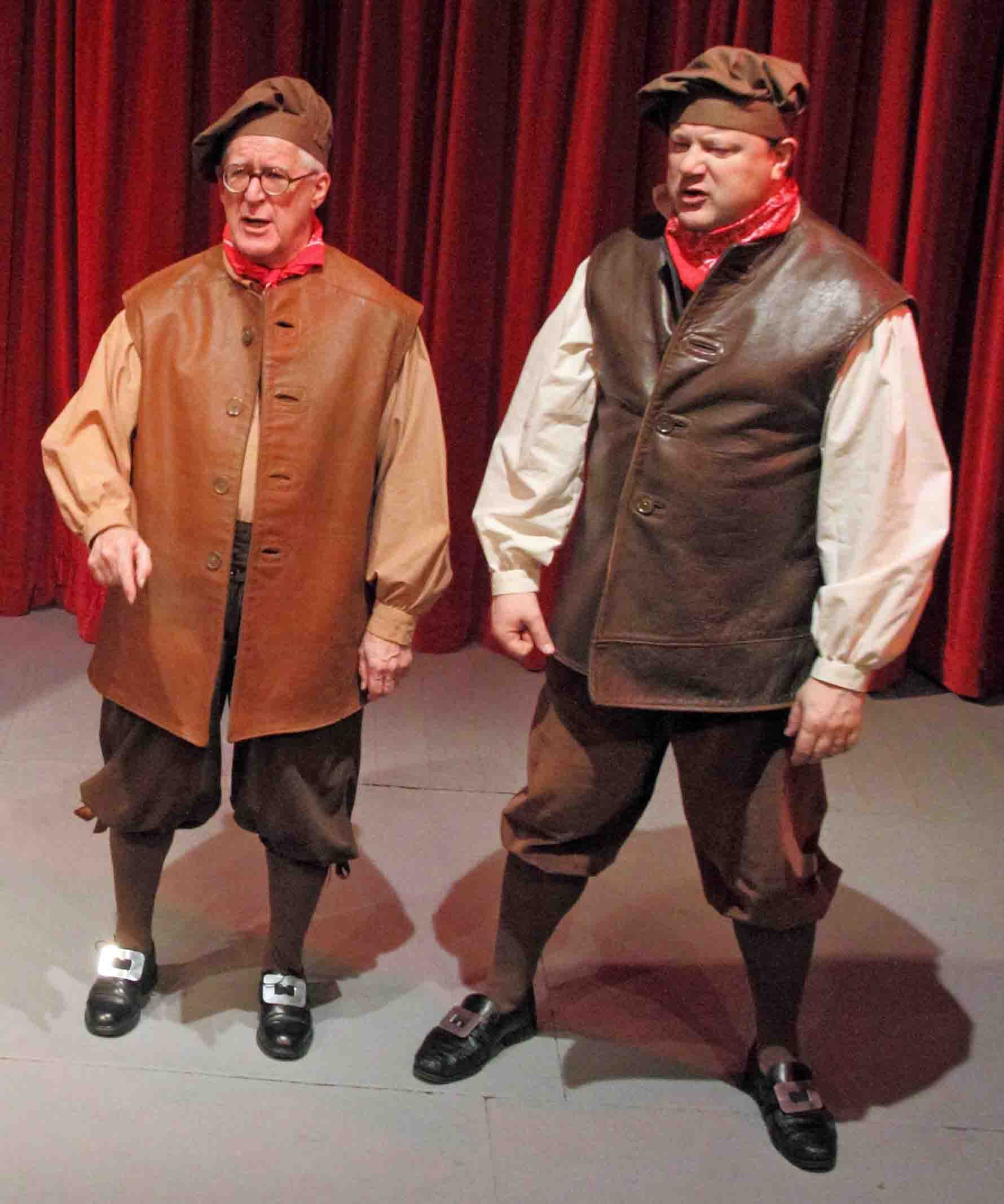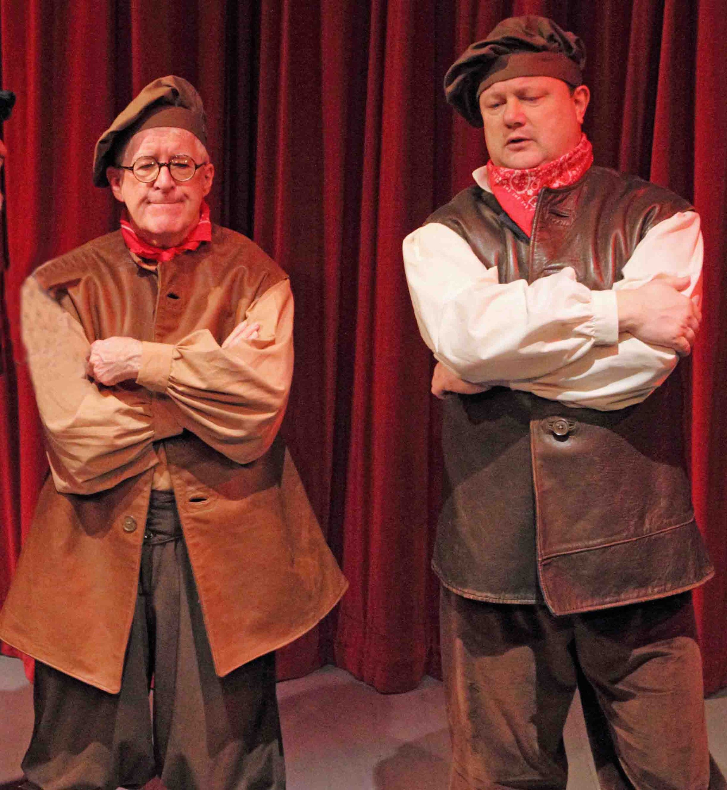 His two henchmen, Ron1 and Ron 2, (Nevin Ward and Darryl Hall), were hilarious as would-be tough guys with no brain between them. Their routine, with Squire Skinflint, about money owed, was a masterpiece of clever writing and slick comic timing. We were even treated to the sight of our long-standing prompt, Sheila Smith, taking part in the action!