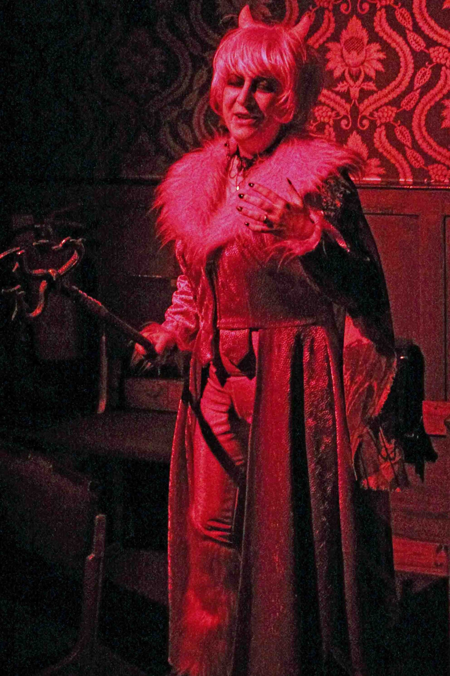 Speaking clearly in rhyming couplets, she began to set the scene for us, but was interrupted by her sister the bad fairy Demonica, who entered to loud organ chords. Angelica was all white, but Demonica, played by Rachel Joynson herself, was all in red with malevolence oozing from her fingertips.