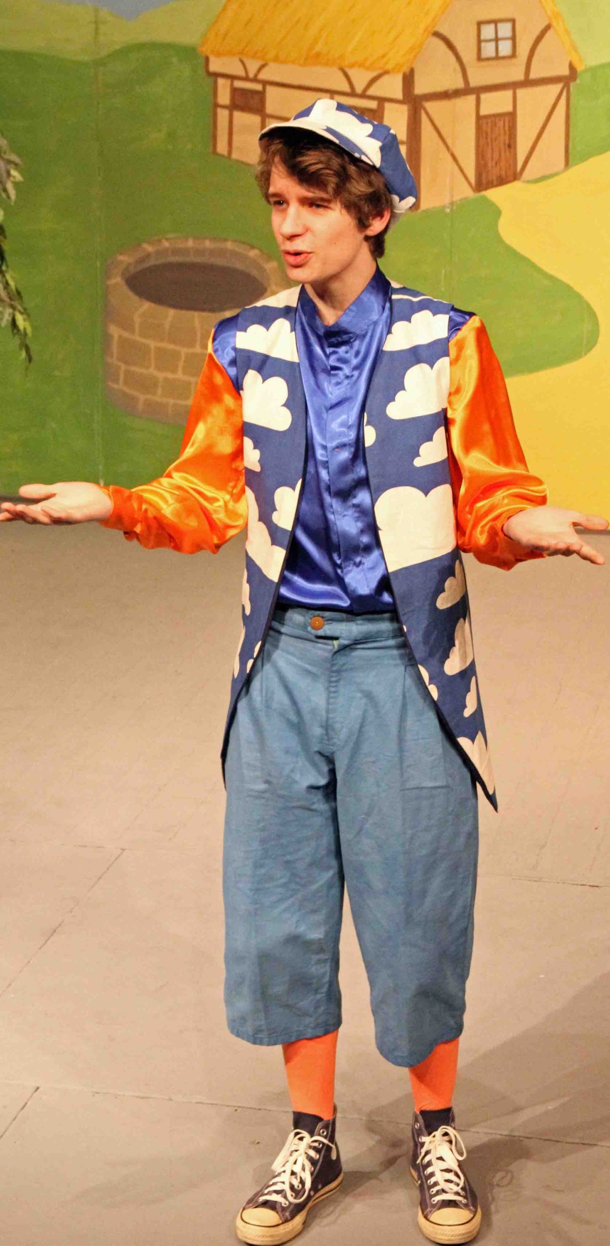 Although a regular in the Pateley Panto scene, this was Peter’s first time in the dame part, and it fitted him like a glove. His ability to work with the audience and other members of the cast was excellent, being considerably enhanced by a series of eye catching outfits, which he wore with panache. Mother Goose’s dresses, wigs and shoes showed off her physical attributes admirably! She was a real scene stealer