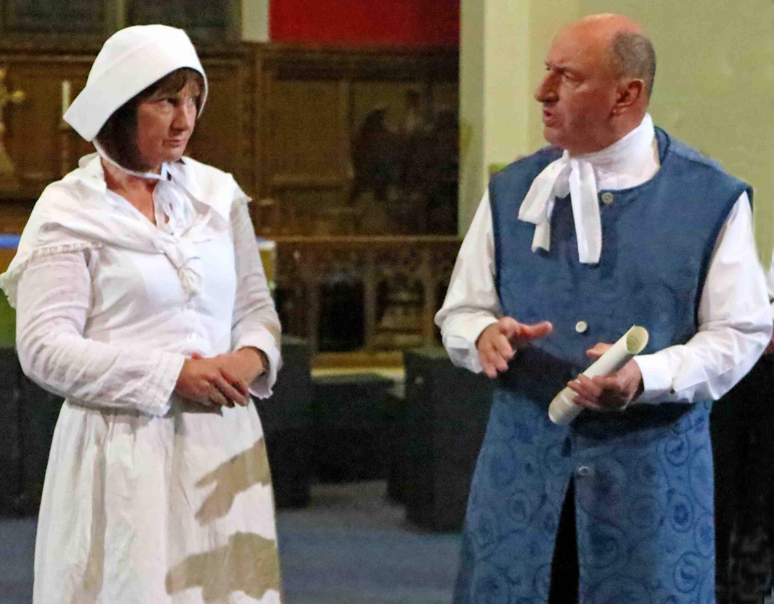 Christine Ward as narrator welcomed us to the ‘interesting times’ in which we found ourselves and with the help of ‘Eugene Aram’ himself (Tim Wilkinson), took us back to the Barrel Inn, Knaresborough in 1740.