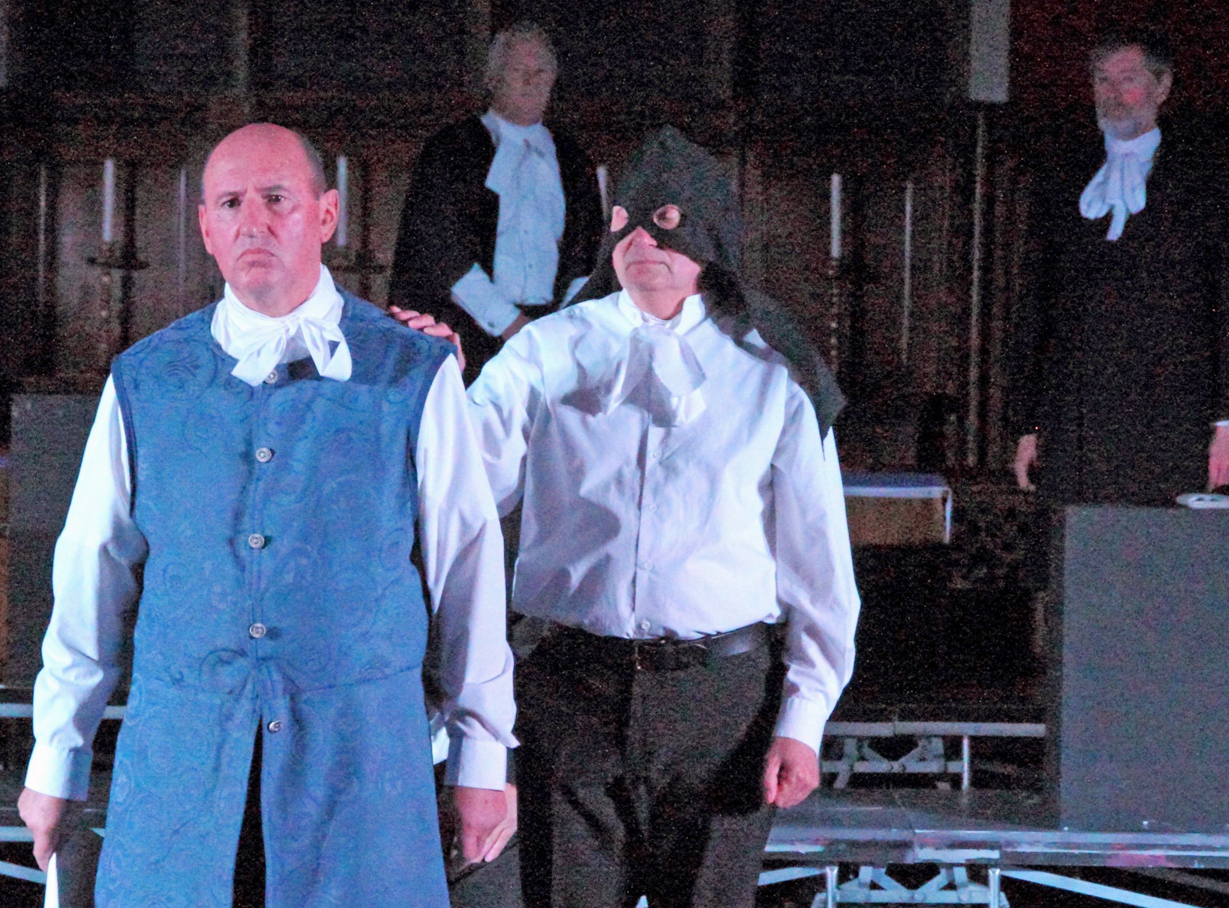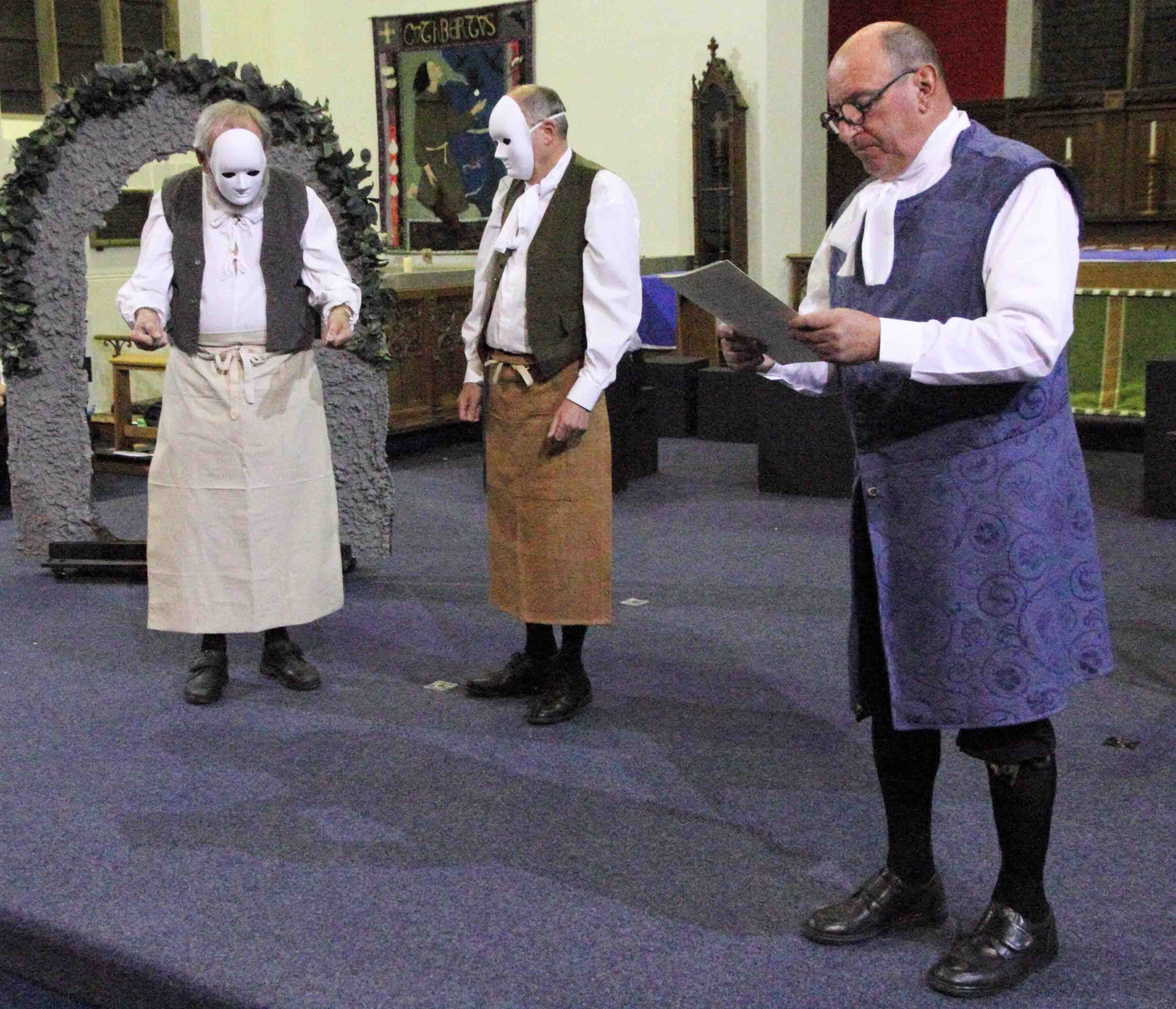 Throughout all this Tim Wilkinson, playing Eugene Aram, maintained anair of calm, resignation and detachment. His solo musings were heart wrenchingly beautiful, but there was no last-minute reprieve and we heard an echo of the ‘Prickle -Eye Bush’ before the Executioner pulled the trap door and Aram fell.
