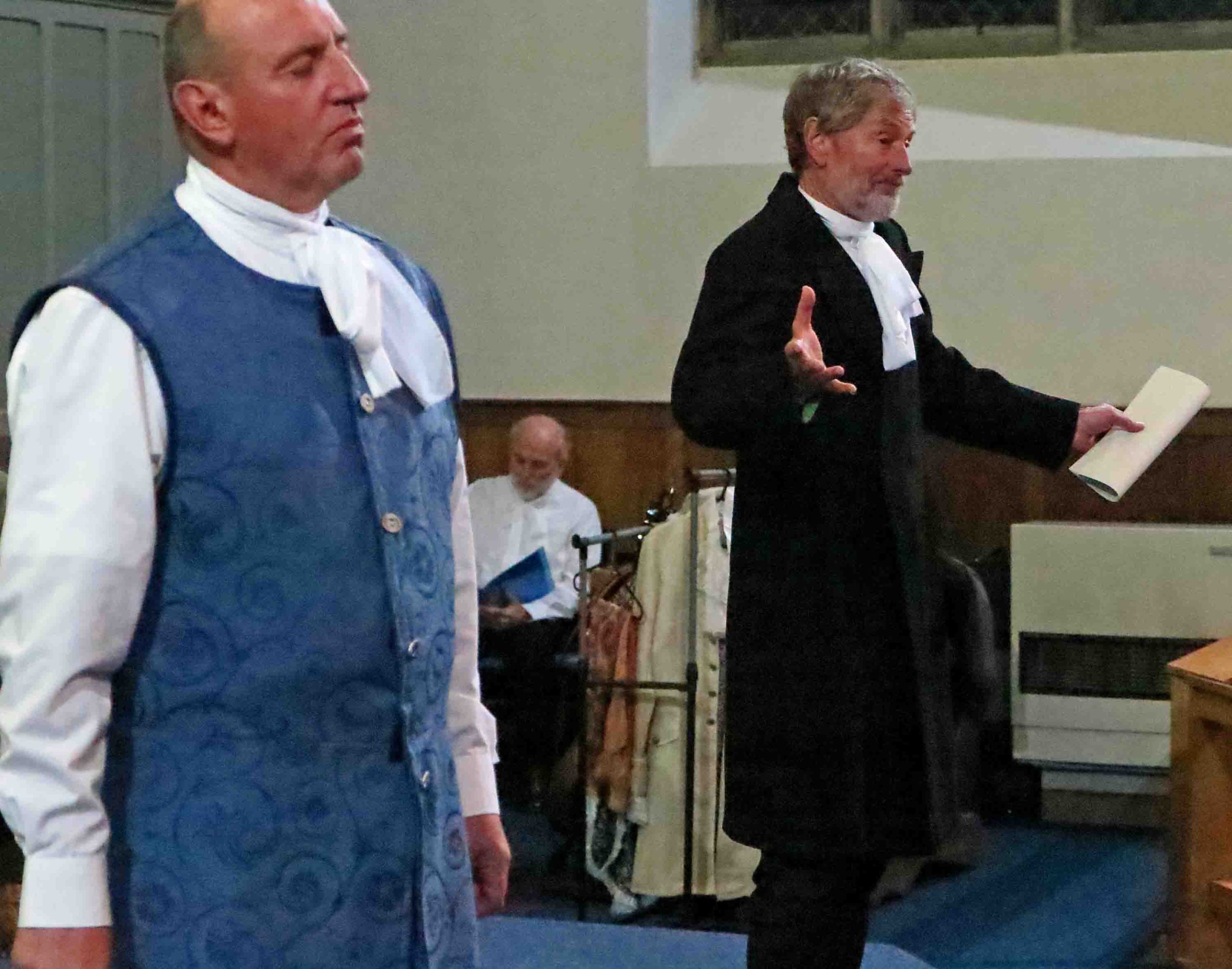 Taken back to Yorkshire, Eugene Aram, faced the unpleasant William Noel, Justice of the Peace (Keith Burton) and his self effacing but efficient clerk played by Steve Boast.