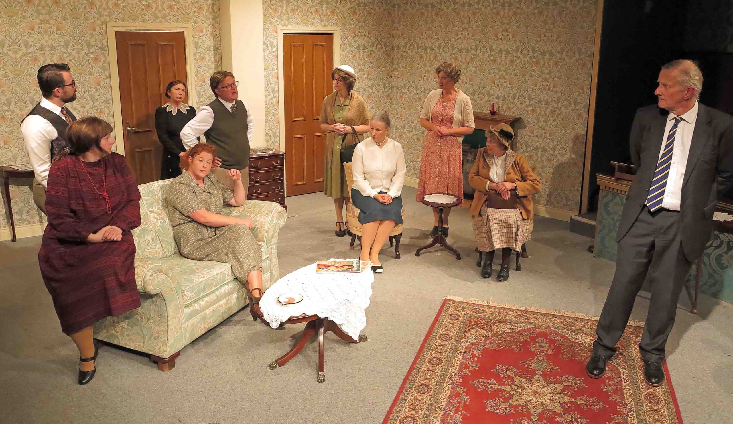 Particular attention had been paid to the set dressing with appropriate furnishings and properties.  Costumes, accessories, make-up and hairstyles had been carefully researched in keeping with the era of the piece.  The set was designed by Justin Enthoven; costumes by Ruth Dodsworth and team; props by Jo Wright; set built by Justin Enthoven, Steve Colbourne, Carol & Richard Blades, Steve Hunt, Ruth Dodsworth, Derek & Joan Howard, Tessa Lee, Mike Nelson, Kevin Murgatroyd, Wendy Oldham, Alan Stewart and Jo Wright.  A magnificent team.