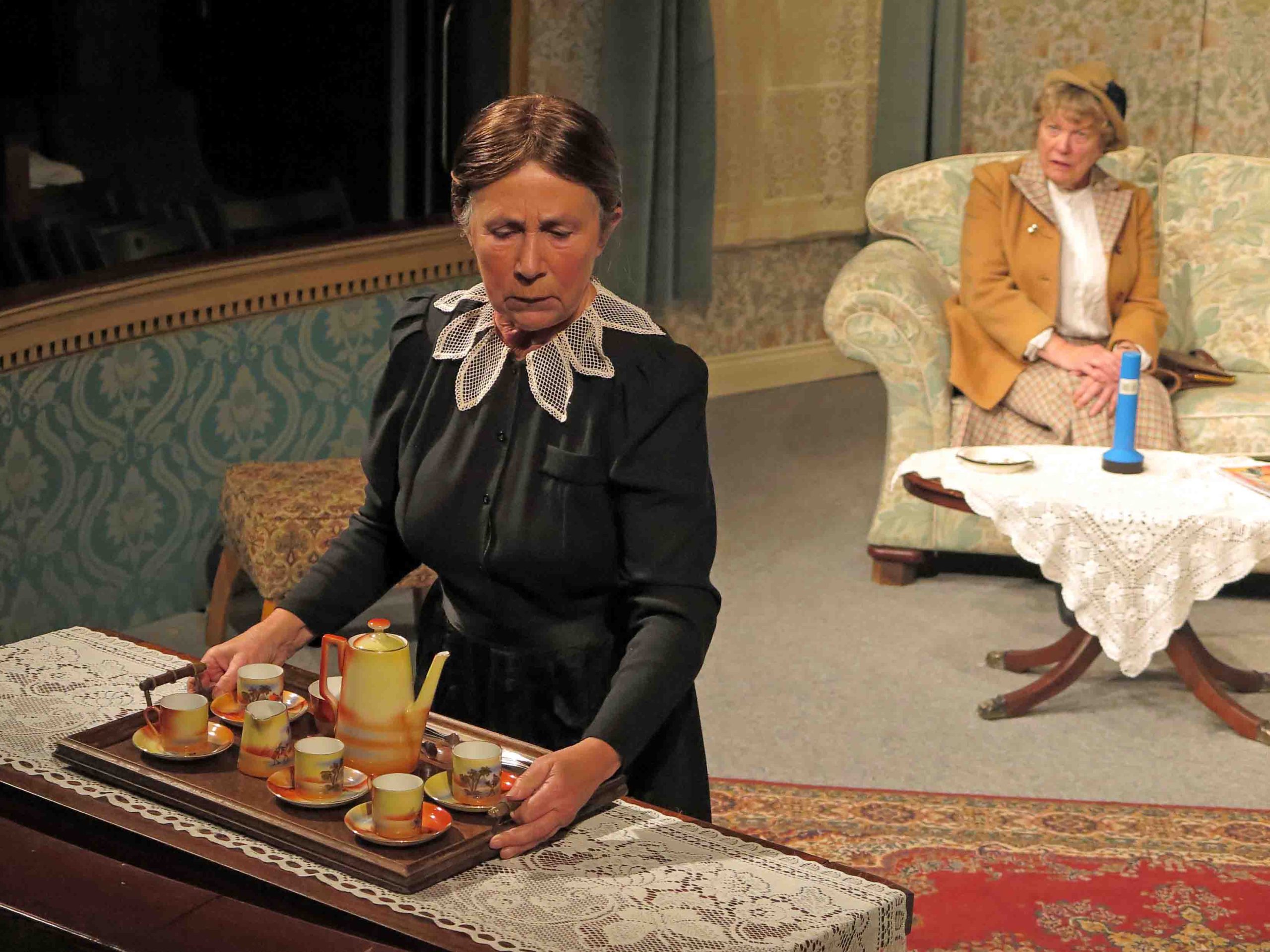 Joyce Liggins as Mrs Swettenham chats to Miss Blacklock