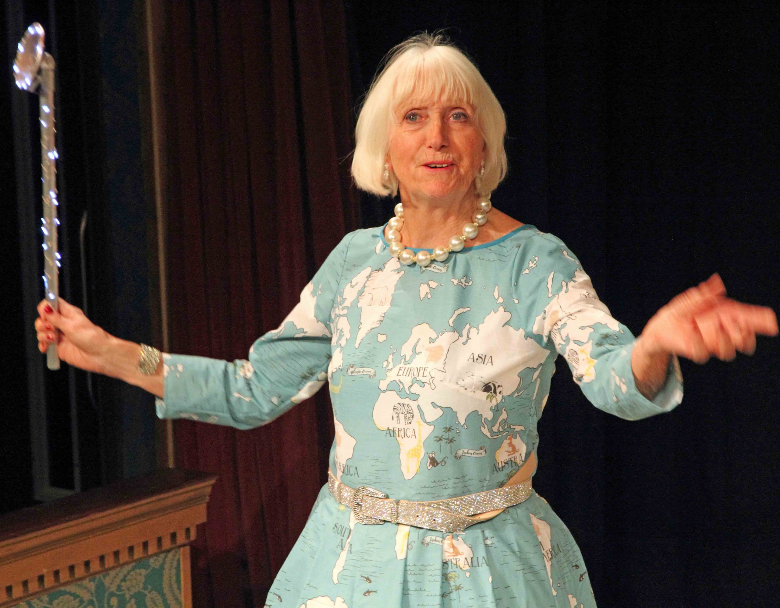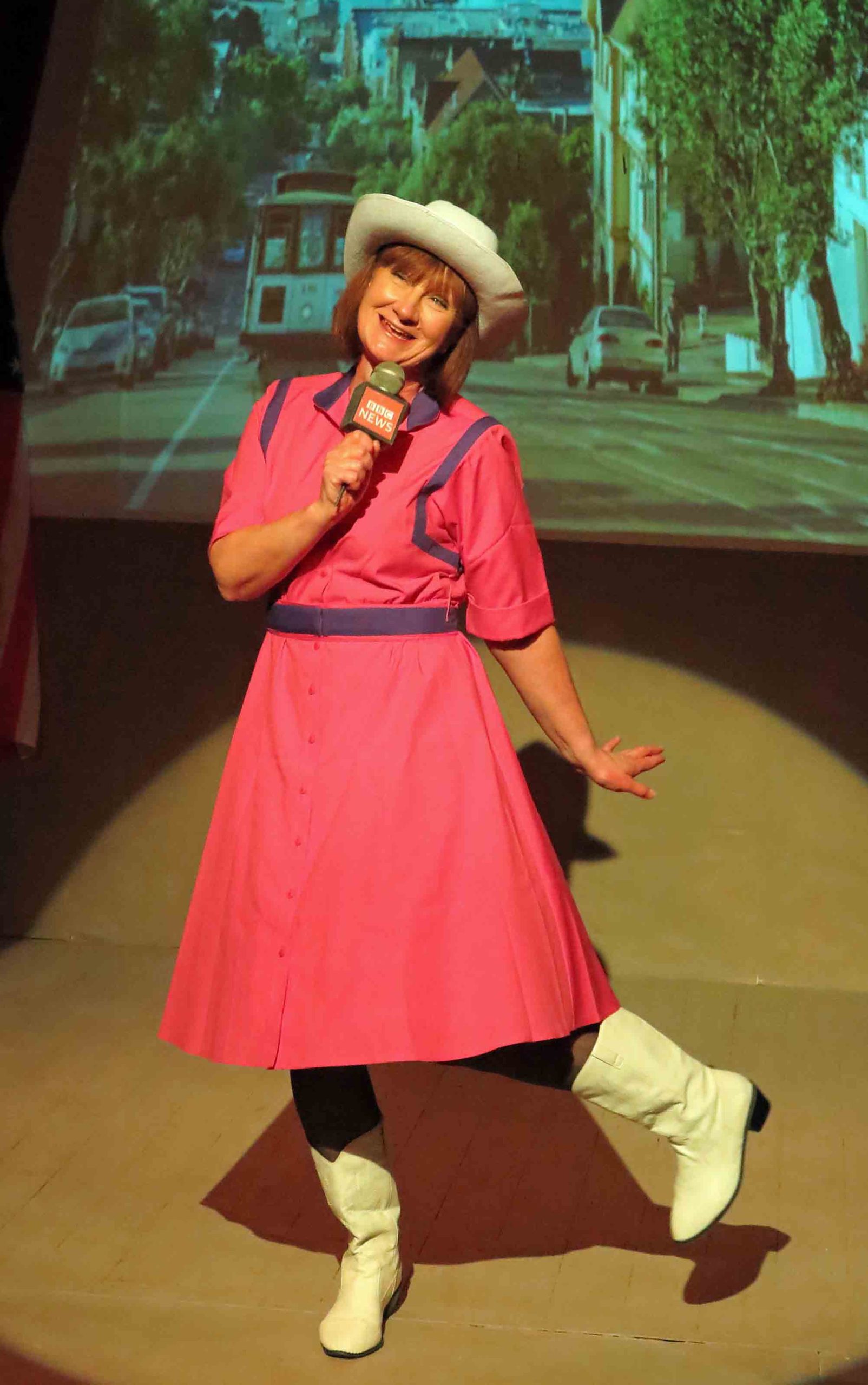 There was one other character who kept cropping up in every country they visited – Carol Bailey, as the BBC Correspondent with a variety of ludicrous names and accents. Carol has been a stalwart of the Society over the last few years and she revelled in the part.