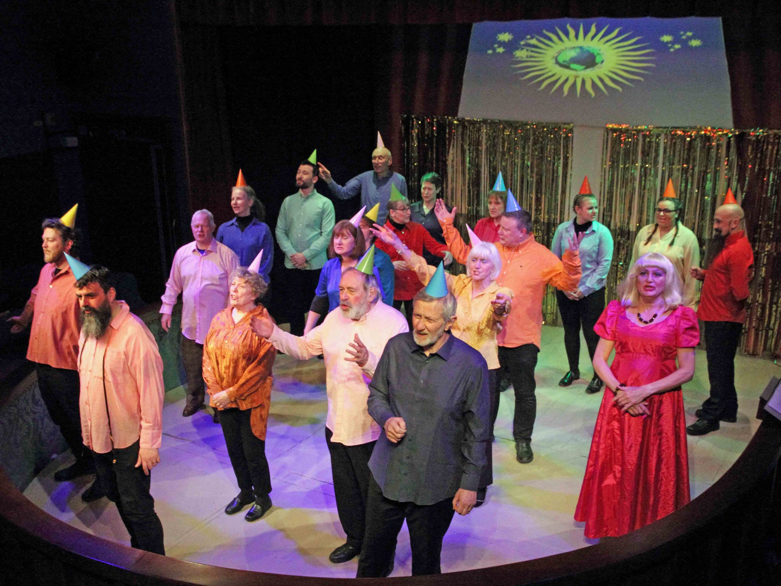 It might seem like a strange idea for a pantomime but this NODA script by Dave Crump really works well. It was an ideal choice for the Society, which allowed the company to play to its strengths. It is packed with awful jokes, colourful characters, varied settings and rip-roaring adventures.