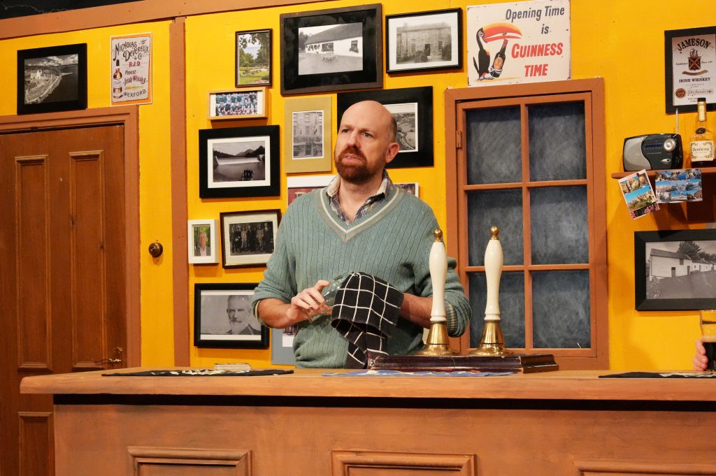 Written in 1997, The Weir has had continued success including a recent revival at the Harold Pinter Theatre starring Brendan Gleeson. It is a tale as old as time, maybe a version of the Canterbury Tales, with a group of people (one of them an outsider) meeting together and telling their stories. When the audience entered the Playhouse at Pateley Bridge, it was almost as if we were ourselves in Brendan’s Bar. The set was impressive and very detailed with a range of props casually arranged but giving us a real sense of place. The setting, however, must have been moved to present day, judging by the dates mentioned. Even the preshow announcement got us into the mood as the wood burner flickered in the darkness; and the mud on Jack’s coat and Jim’s shoes were yet another detail which added to the authenticity. I just wish there had been the slight sound of wind ongoing outside the pub, as well as the sudden rush of wind when the door opened. Then I would really have been in the Irish countryside late on a winter’s night.